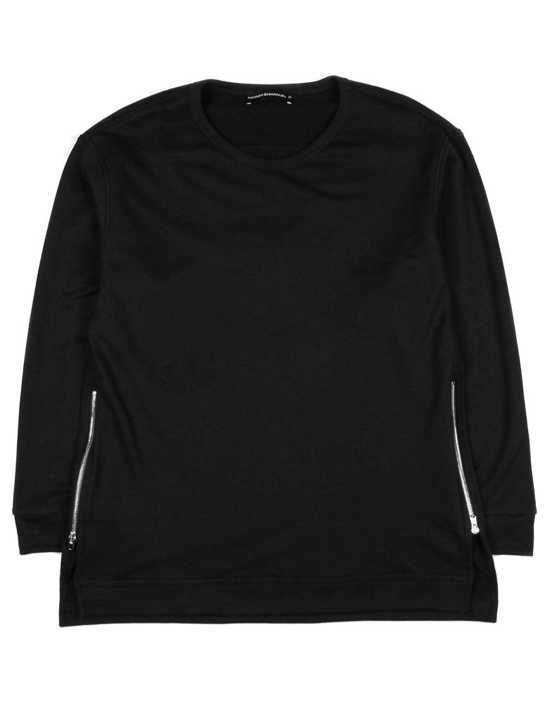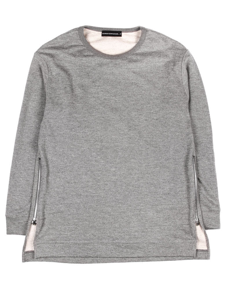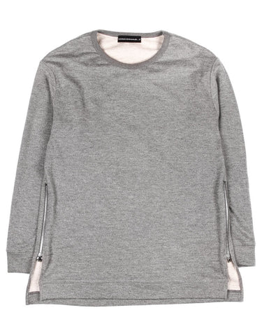 100% Imported Italian French Terry      Produced in USA      82% Cotton      18% Polyester      Sterling Silver RiRi Zipper